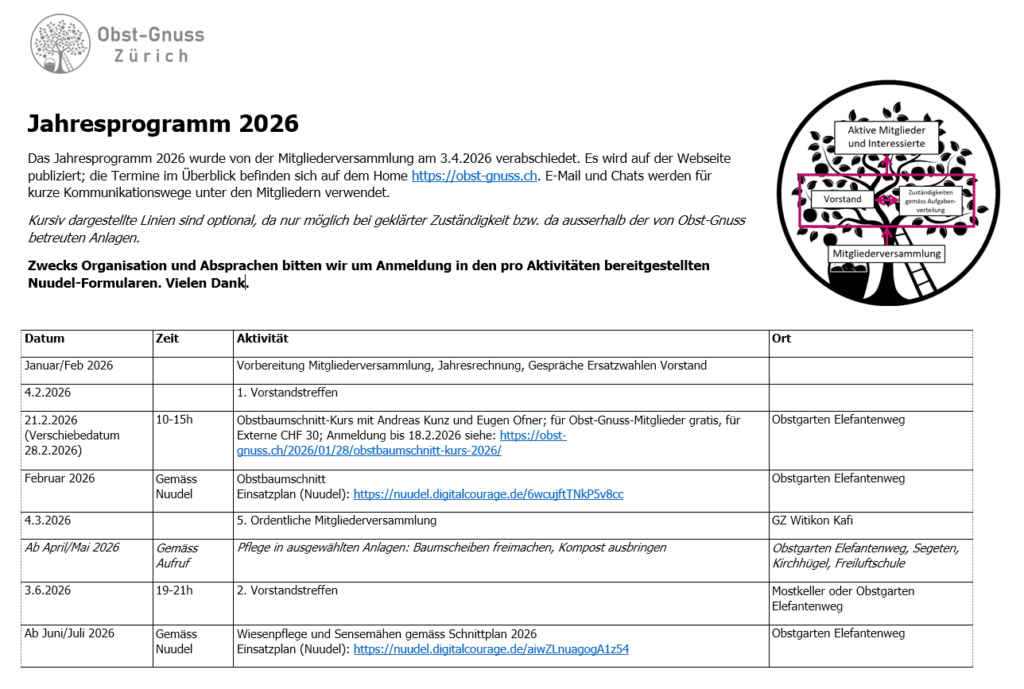 Das Jahresprogramm 2026 von Obst-Gnuss ist online und als Download verfügbar.